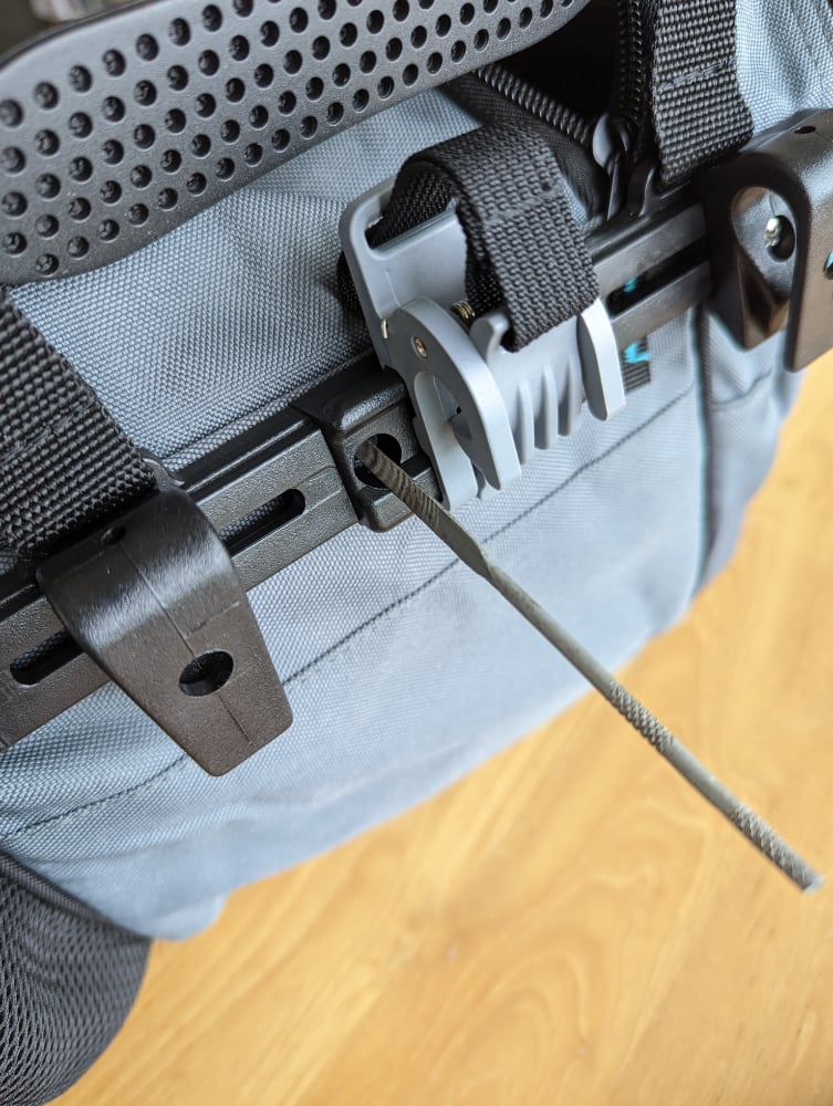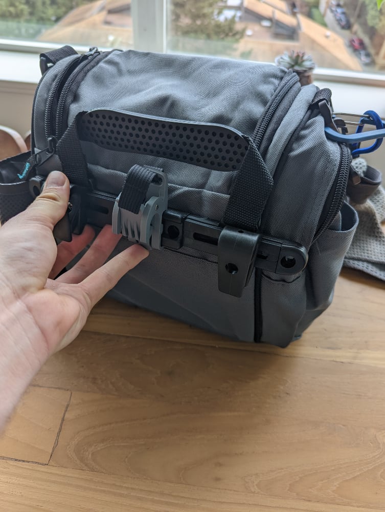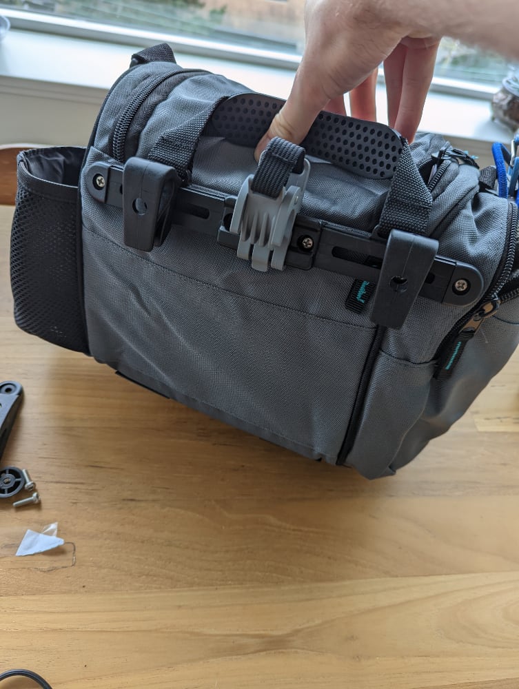 None of my previous bags were a good fit for a pannier. I needed to find something longer to better mount against the bike.